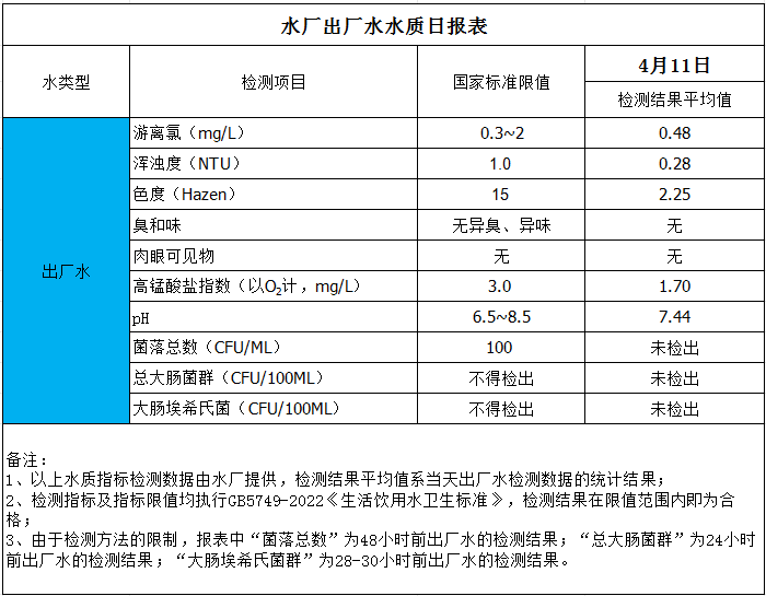 水廠出廠水水質(zhì)日報表(2025-4-11)