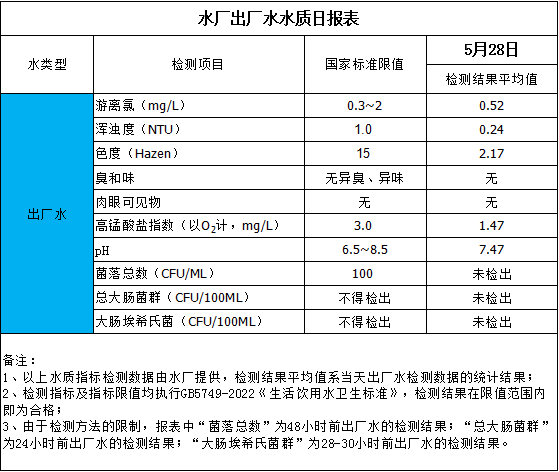 水廠出廠水水質(zhì)日報表(2025-5-28)