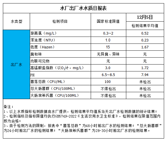 水廠出廠水水質(zhì)日?qǐng)?bào)表(2025-12-5)