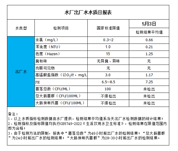 水廠出廠水水質(zhì)日報表(2023-5-3)