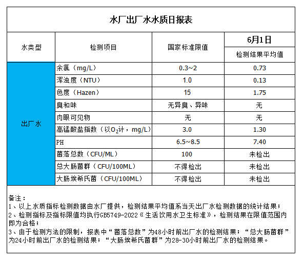 水廠出廠水水質(zhì)日?qǐng)?bào)表(2023-6-1)