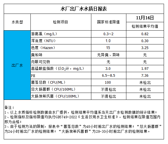 水廠出廠水水質(zhì)日報(bào)表(2023-11-14)