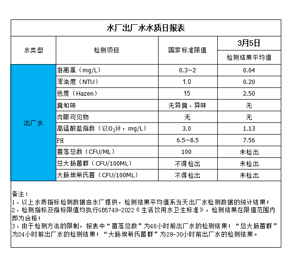 水廠出廠水水質(zhì)日報(bào)表(2024-3-5)