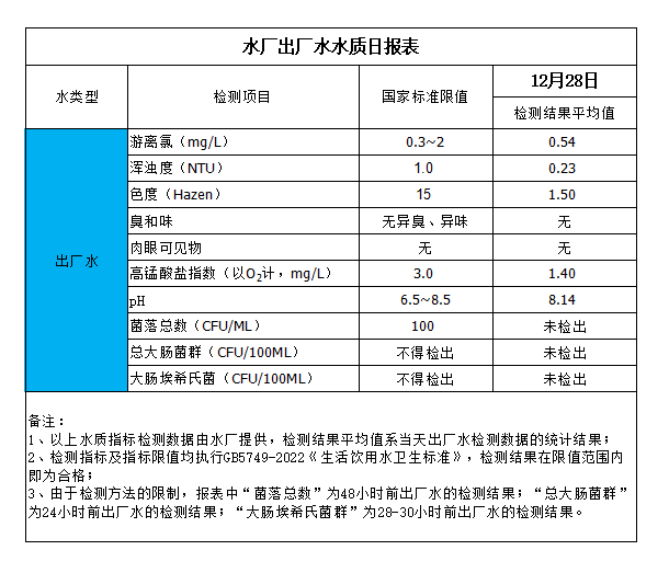 水廠出廠水水質(zhì)日?qǐng)?bào)表(2024-12-28)