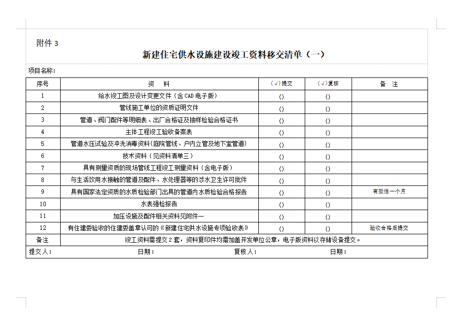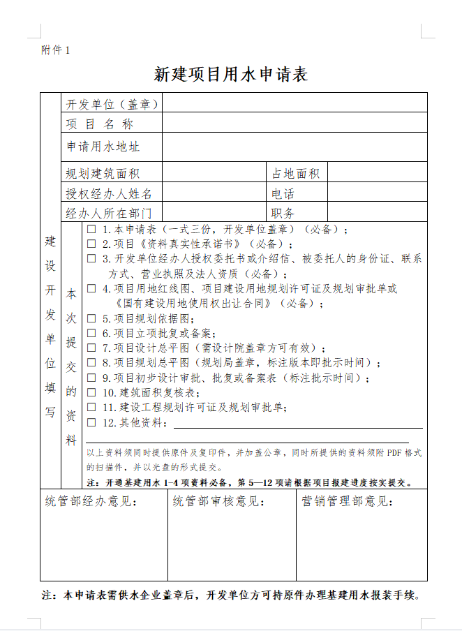新建住宅項目用水申請